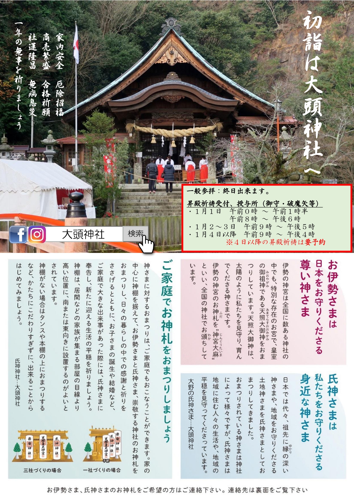 ※ 正月三が日の昇殿祈祷は予約不要です。1月4日以降はご予約の上、御参拝下さい。